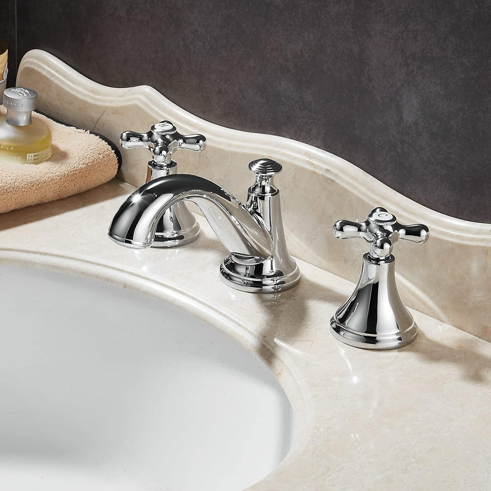 Kelelife Wasserhahn Bad, Waschbecken Mischbatterie mit Zwei Griffen DREI Löchern, poliertes Chrom, P