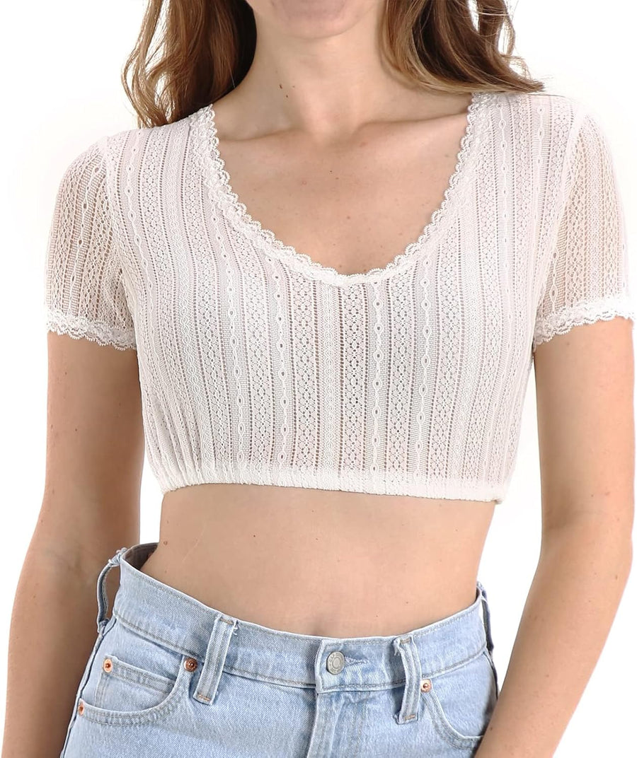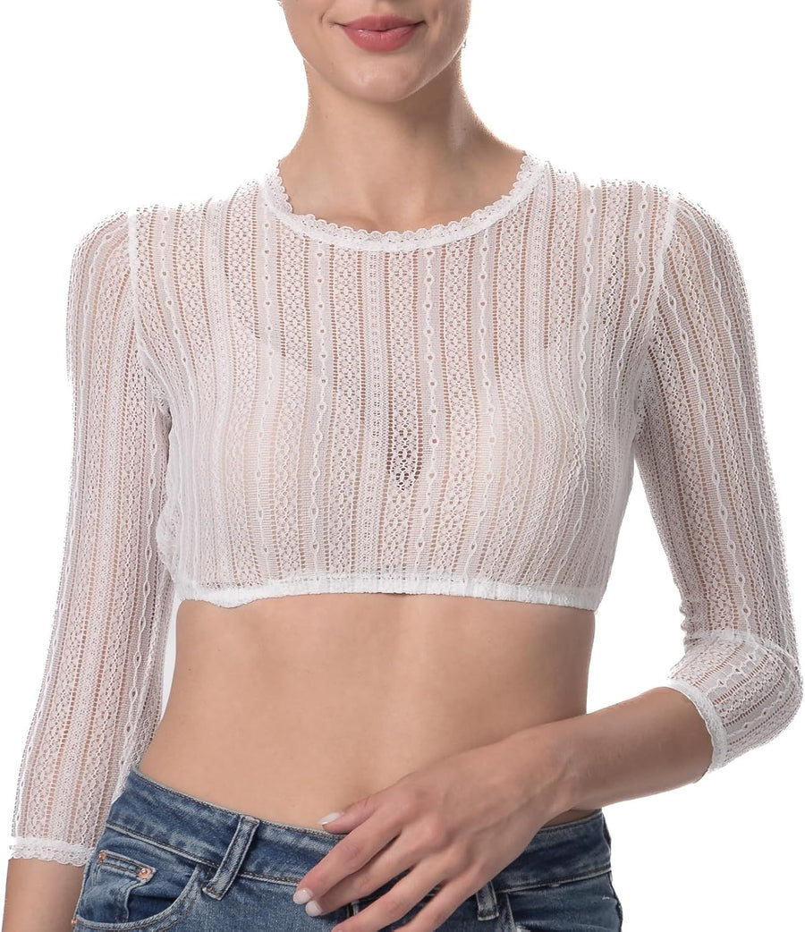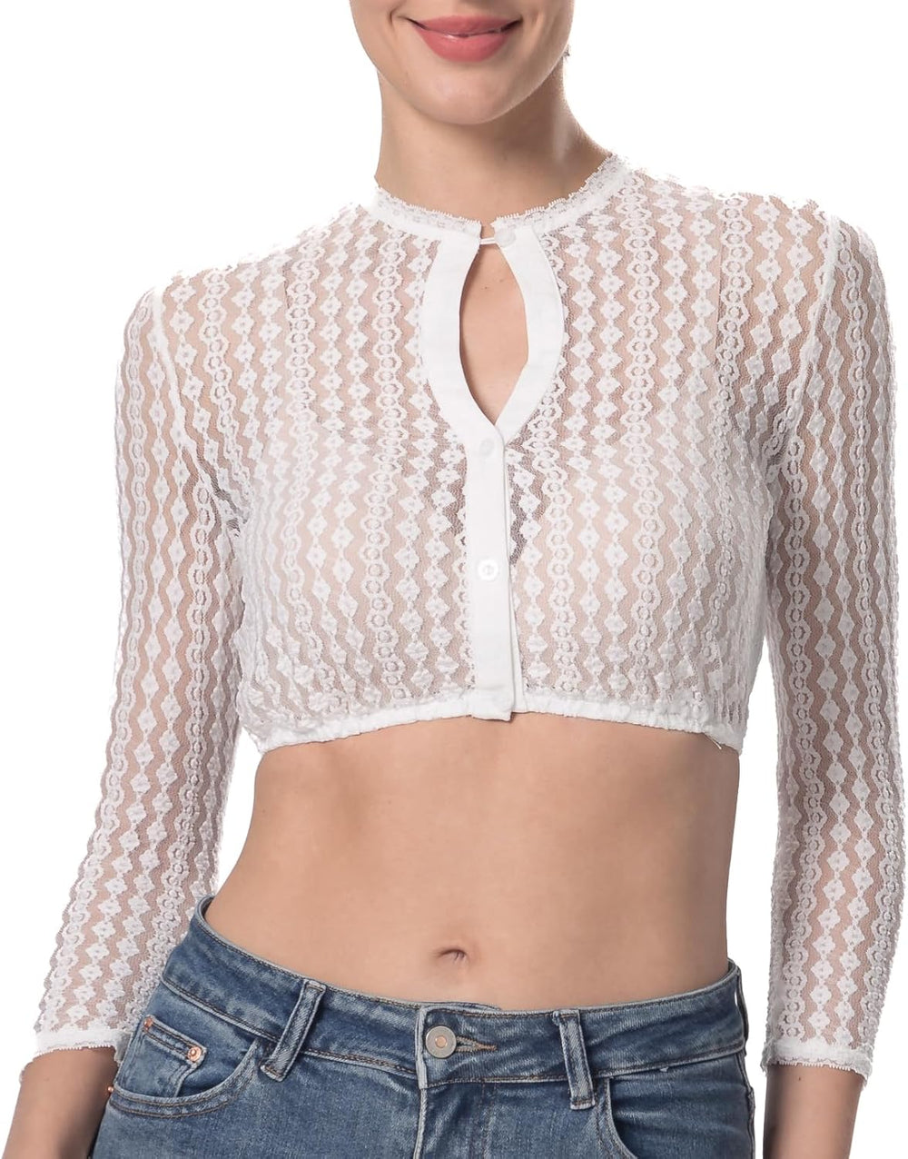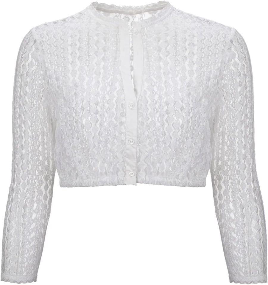 Kelliar Damen Dirndlbluse Spitze Weiss Elegantes und Schönes mit Spitze 36 Weiss, 36 Weiss