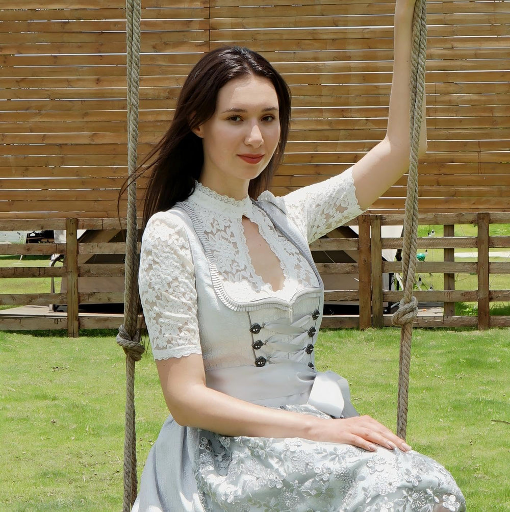 Kelliar Dirndl Bluse Damen Langarm Spitze 3/4 Arm Tropfen-Ausschnitt aus Exklusiver Kollektion Trach