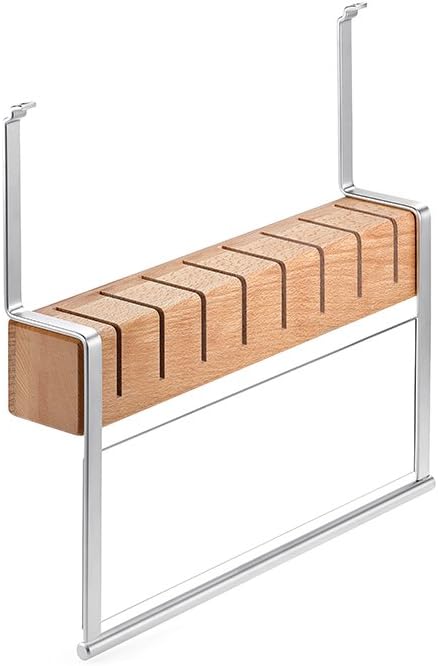 Kesseböhmer Messerhalter mit Handschutz aus ESG für 8 Messer, 1 Stück, Edelstahl Effekt/Buche massiv