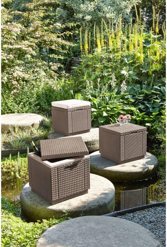 Allibert 212160 Kühlbox Hocker Ice Cube, Rattanoptik, Kunststoff, braun, Braun