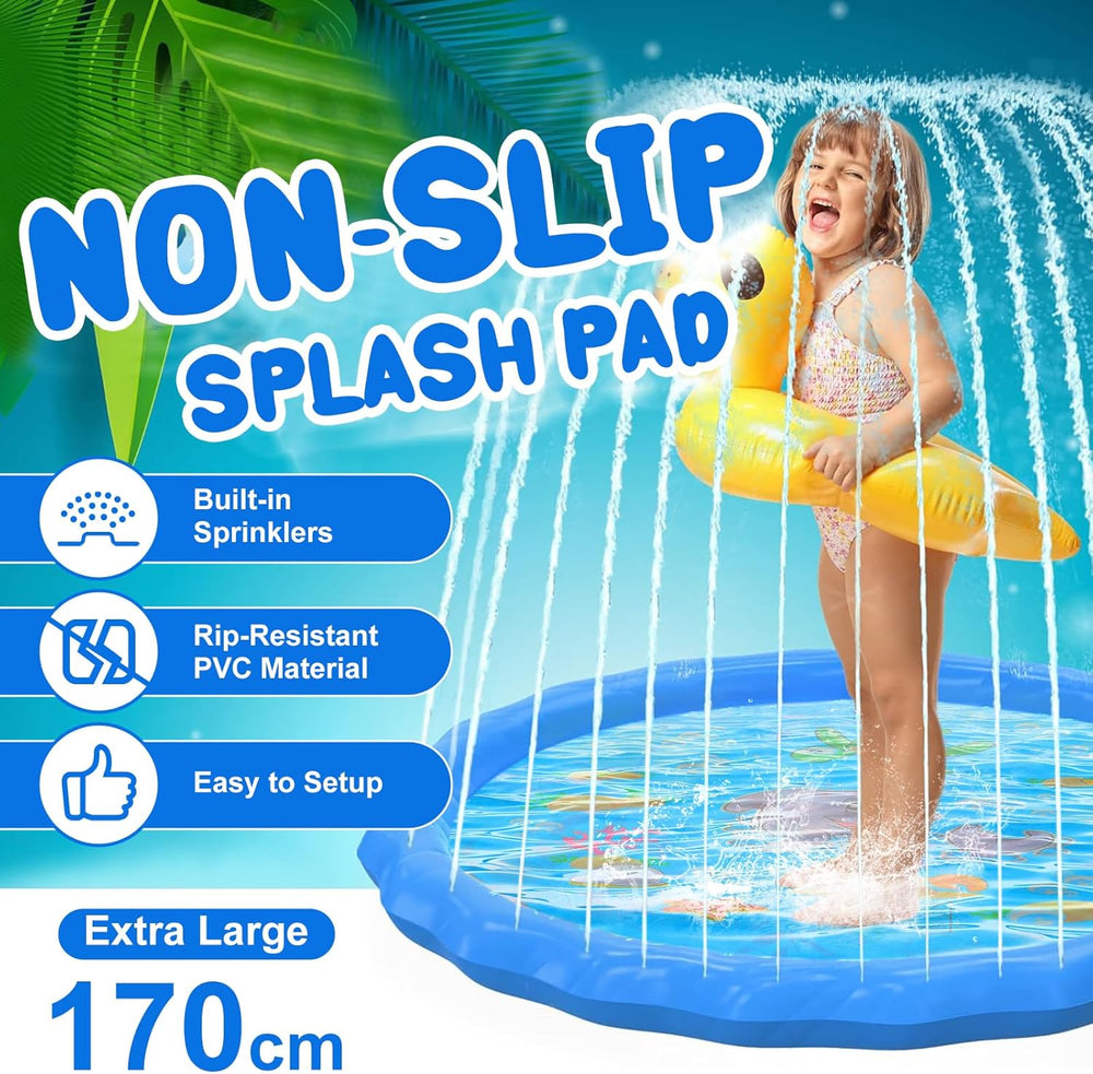 Splash pad Wasserspielzeug Kinder, 170CM Sprinkler Wasser Spielmatte für Draussen, Outdoor Garten, H