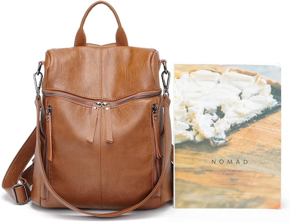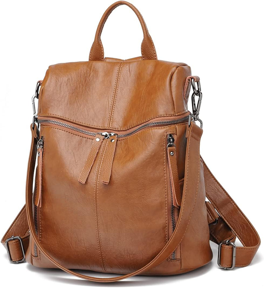 Damen Rucksack PU Leder, Lässig Lederrucksack 2 in 1 Rucksack Schultertasche Diebstahlschutz, Elegan