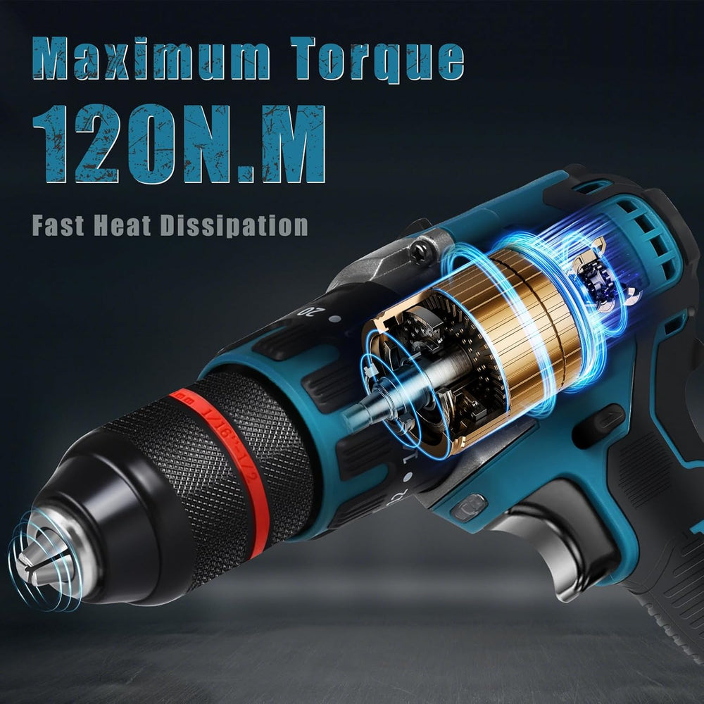 Akku Bohrschrauber Kompatibel mit Makita 18V Lithium-Akku, 120Nm Bürstenloser Schlagbohrschrauber mi