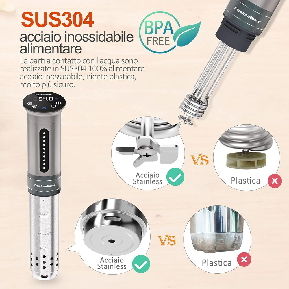 KitchenBoss Sous Vide Garer Stick Präzisionskocher•1100W •360° Zirkulation•40℃-90℃ Temperaturbereich