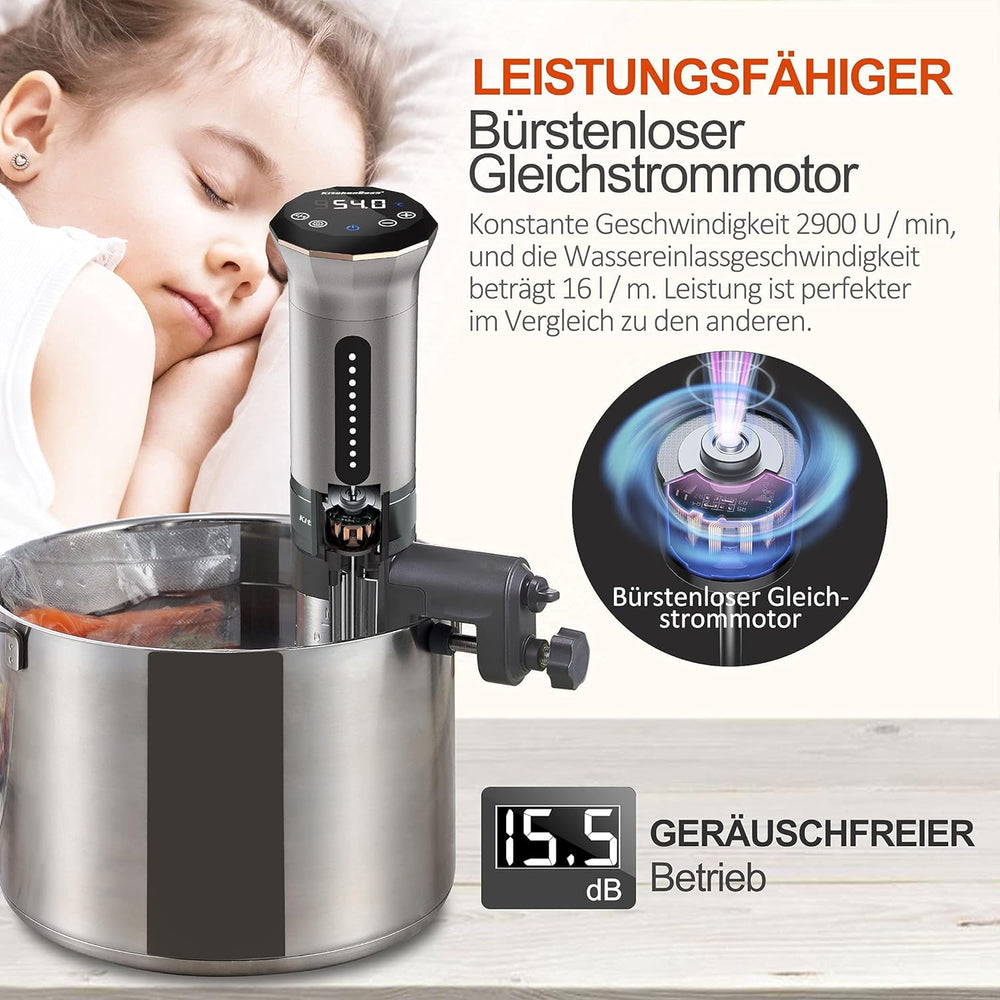 KitchenBoss Sous Vide Roner für Küche, niedrige Temperatur, 1100 W, wasserdicht, IPX7 Zirkulatoren,