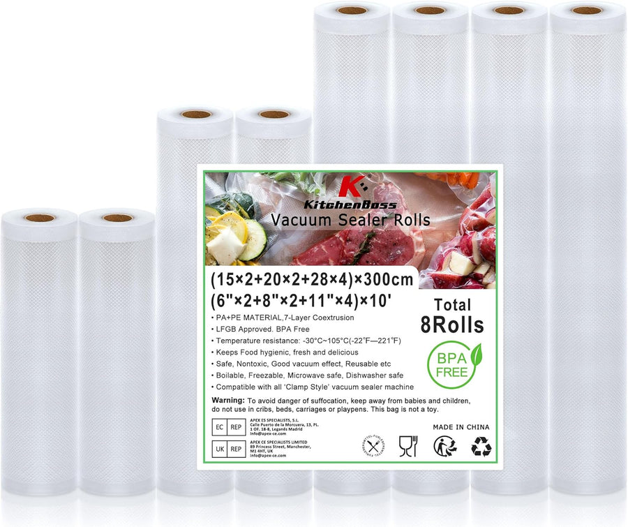 KitchenBoss Vakuumierbeutel Vakumierfolienrollen Vakuumrollen Folienrollen Vakuumierfolie: Sous Vide