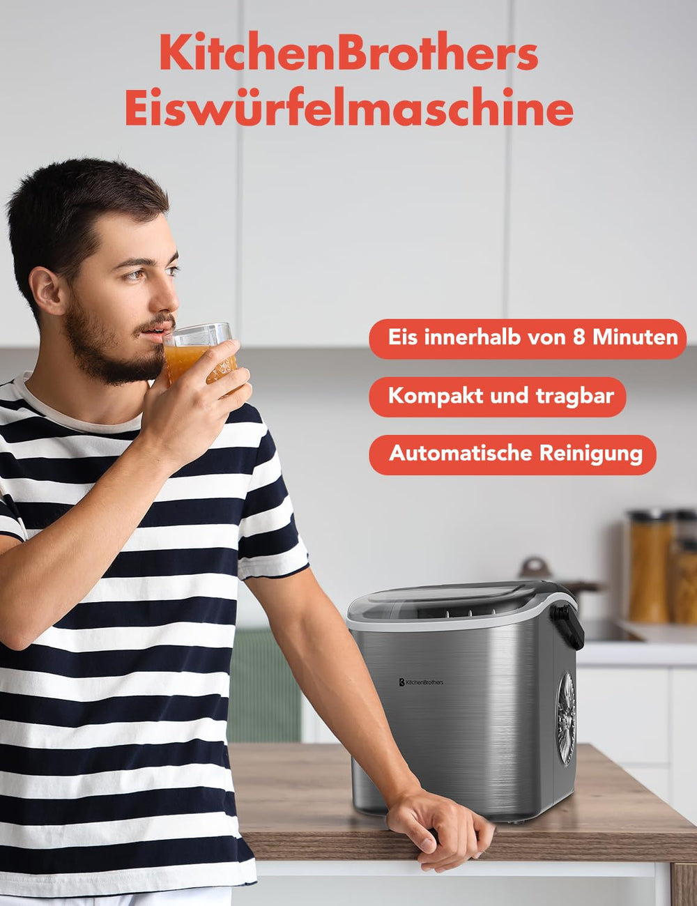 KitchenBrothers Eiswürfelmaschine Klein - Crushed Ice Maschine - Eiswürfel Maschine, Würfel - Ice Cu