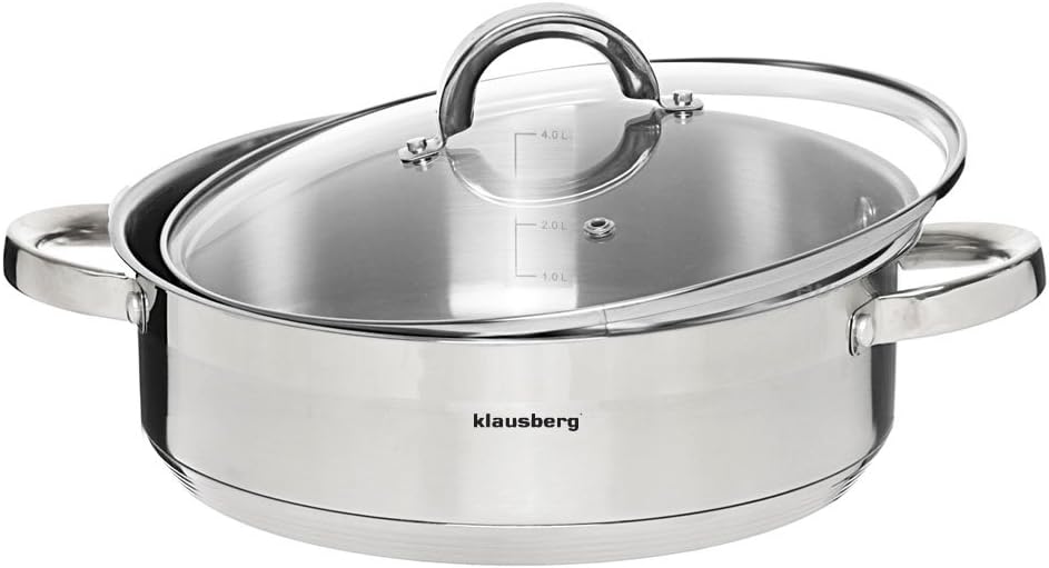 Flacher Topf mit Deckel in vielen Grössen Kochtopf Töpfe Induktion Edelstahl Klausberg (4.5L) 4,6l,