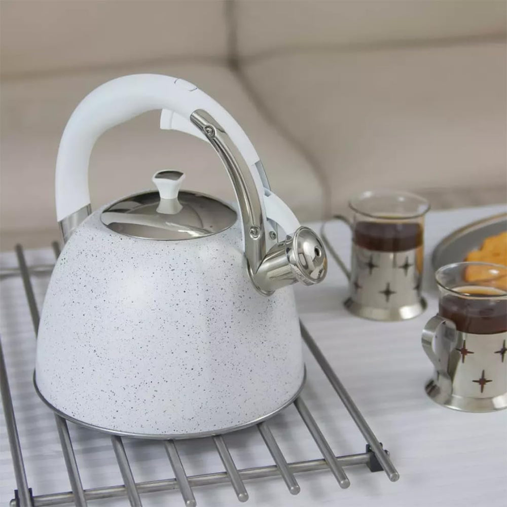 Flötenkessel Wasserkessel Edelstahl Inox Marmorbeschichtung 3.0L Klausberg KB-7261 Weiss | Marmor, W