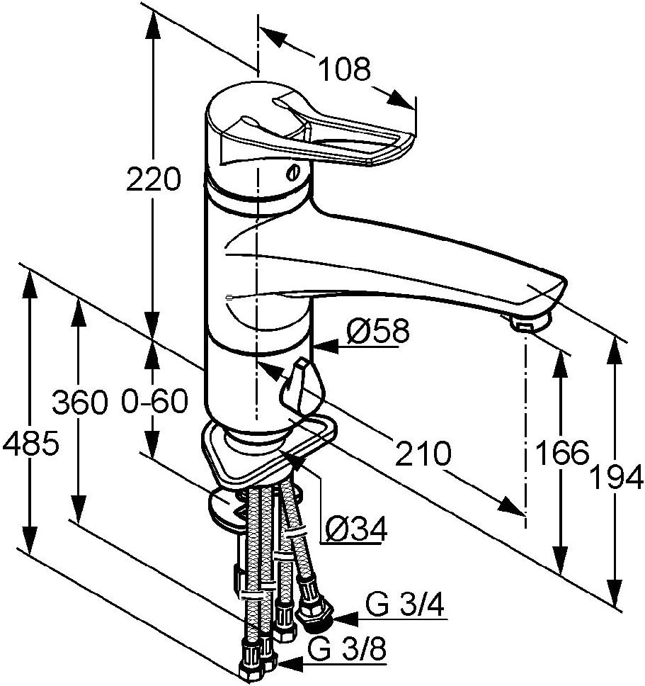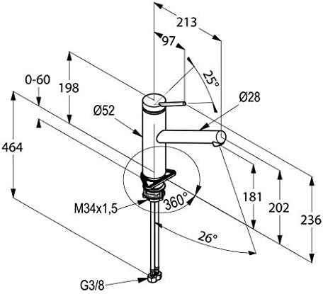 Kludi 410230575 Mischbatterie/Waschtisch – Einhandmischer Ameo XL DN 15, Keramik-Kartusche mit Heiss