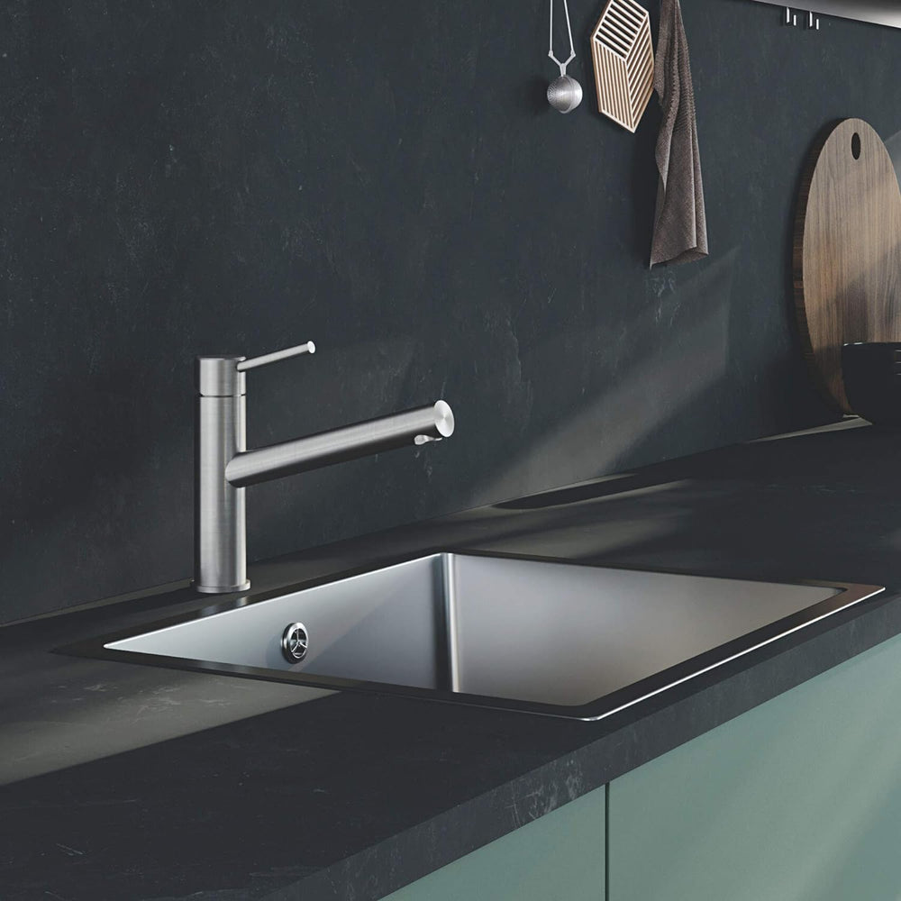 Kludi Küchenarmatur Einhand-Wasserhahn druckfest mit ausziehbarem Auslauf Edelstahl Steel Silber