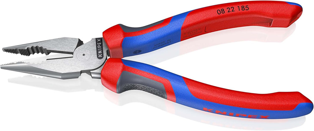 KNIPEX 08 22 185 Spitz-Kombizange mit Mehrkomponenten-Hüllen schwarz atramentiert 185 mm
