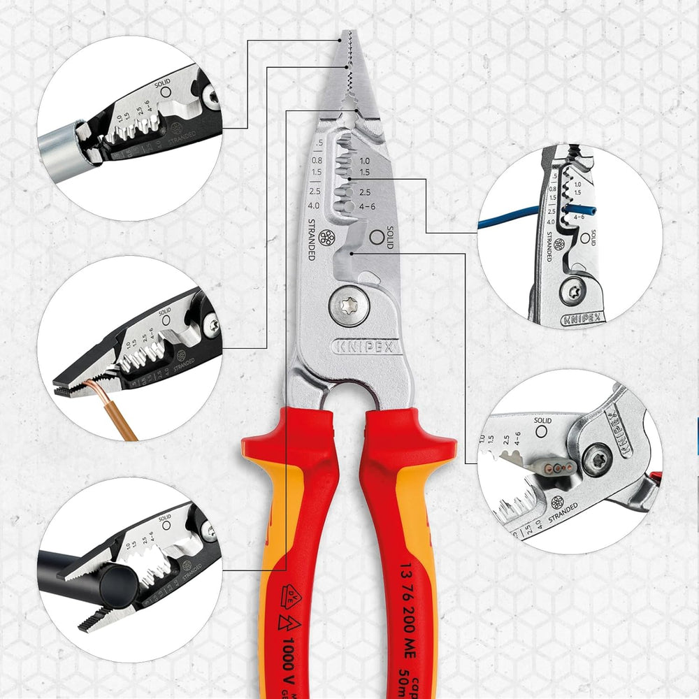 KNIPEX 13 76 200 ME Multifunktions-Elektrikerzange metrisches Modell isoliert mit Mehrkomponenten-Hü