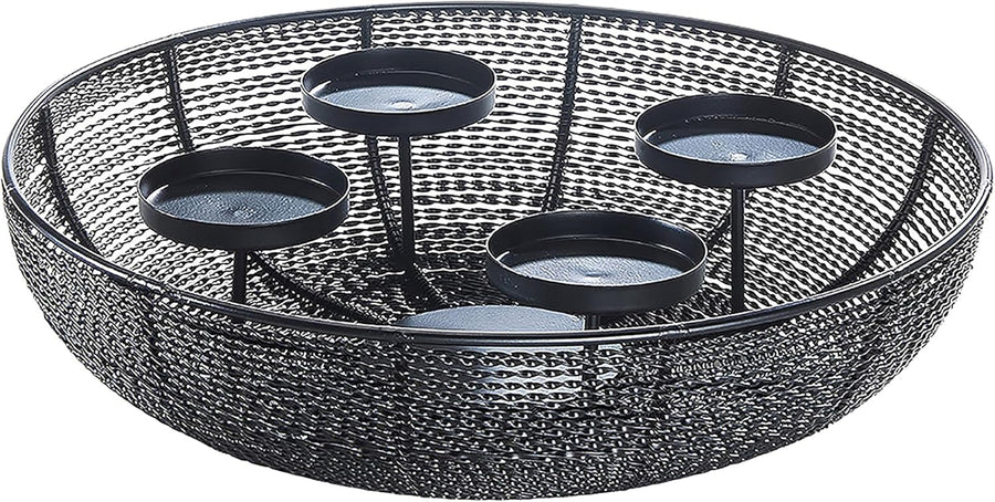 Kobolo Dekoschale Kerzenhalter Adventskranz Draht - aus Metall - schwarz - für 4 Kerzen - 38 cm