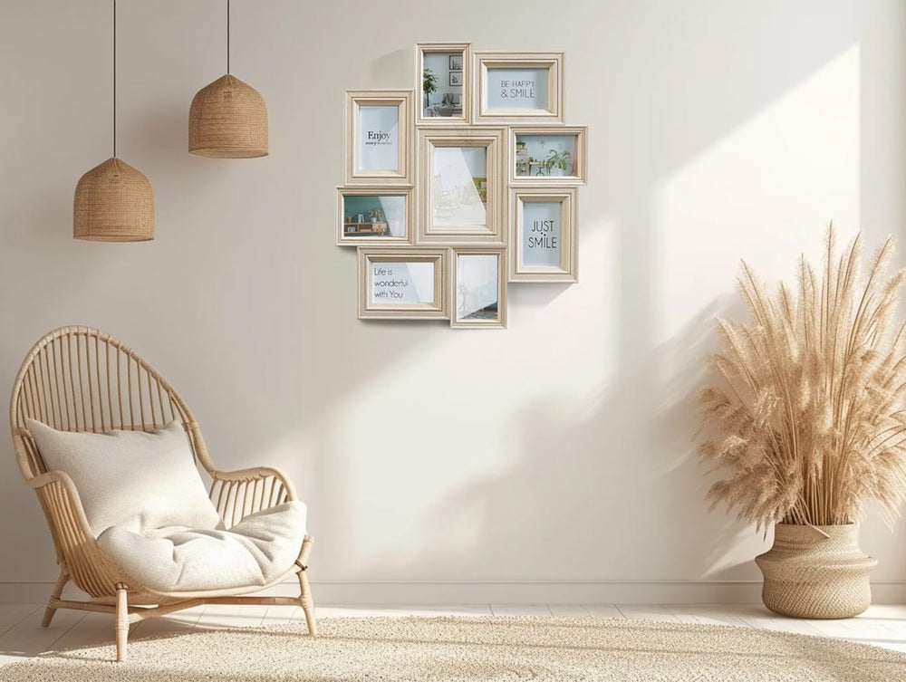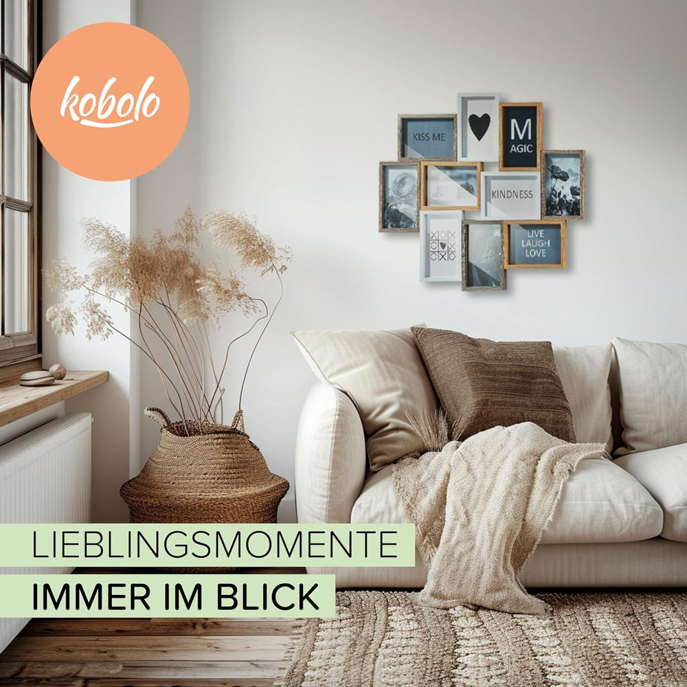 Kobolo Bilderrahmen Bilderhalter Collage LIA für 9 Bilder aus Holz in beige