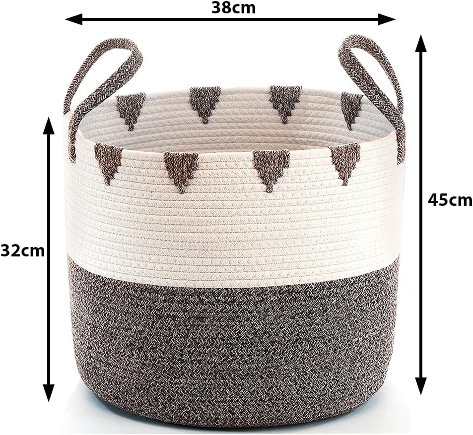 Kobolo Aufbewahrungskorb aus Baumwolle in braun und weiss - mit Griffen