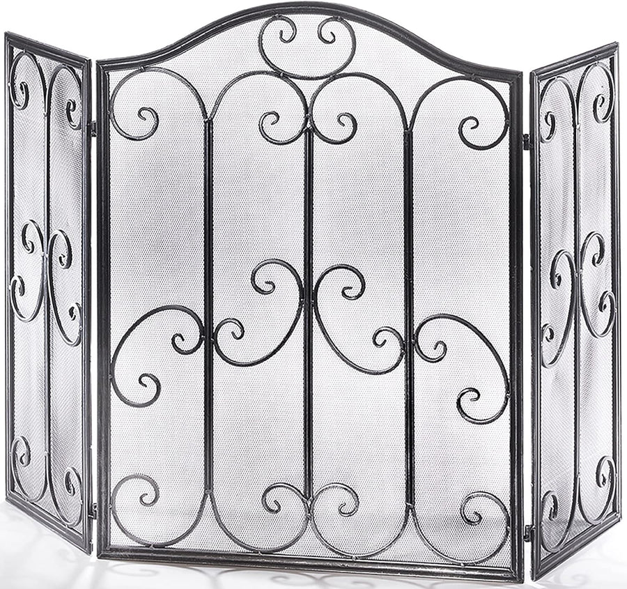 Kaminschutzgitter Funkenschutz aus Metall schwarz Silber gebürstet 85 cm