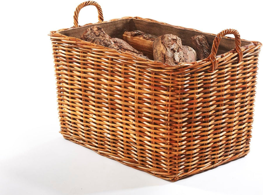 Kobolo Dekorativer Kaminholzkorb aus Weide mit praktischen Griffen
