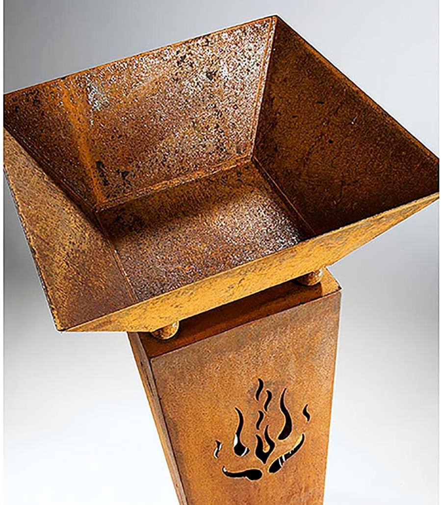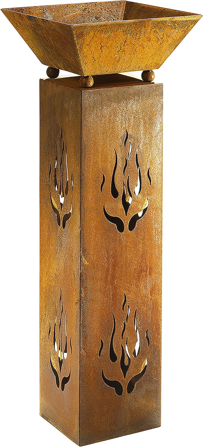 Kobolo Blumenständer quadratisch mit Schale 33x33x89 cm Braun