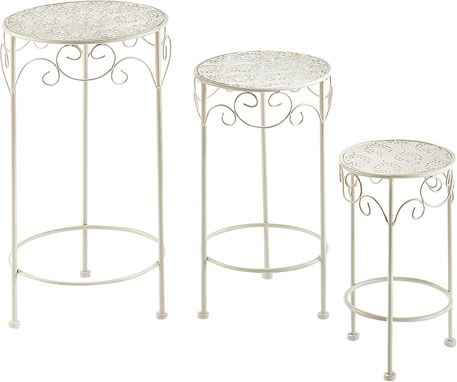 Kobolo Blumenhocker Pflanzenständer 3er Set Gartenständer Dekoständer Antik Cream