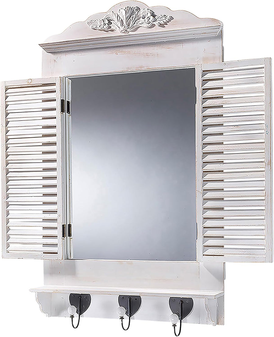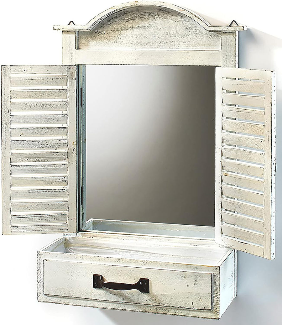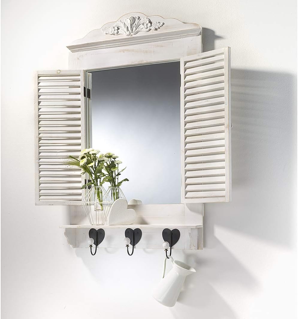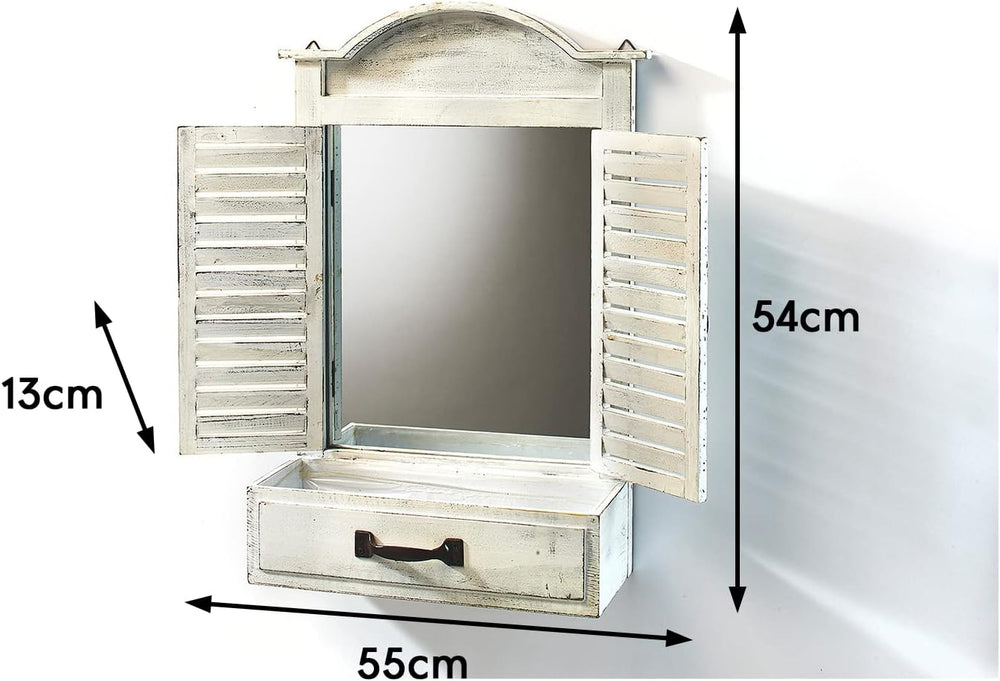 Kobolo Dekofenster Fensterrahmen Spiegel - White Vintage -Fensterläden zum öffnen- 90x55x12 cm