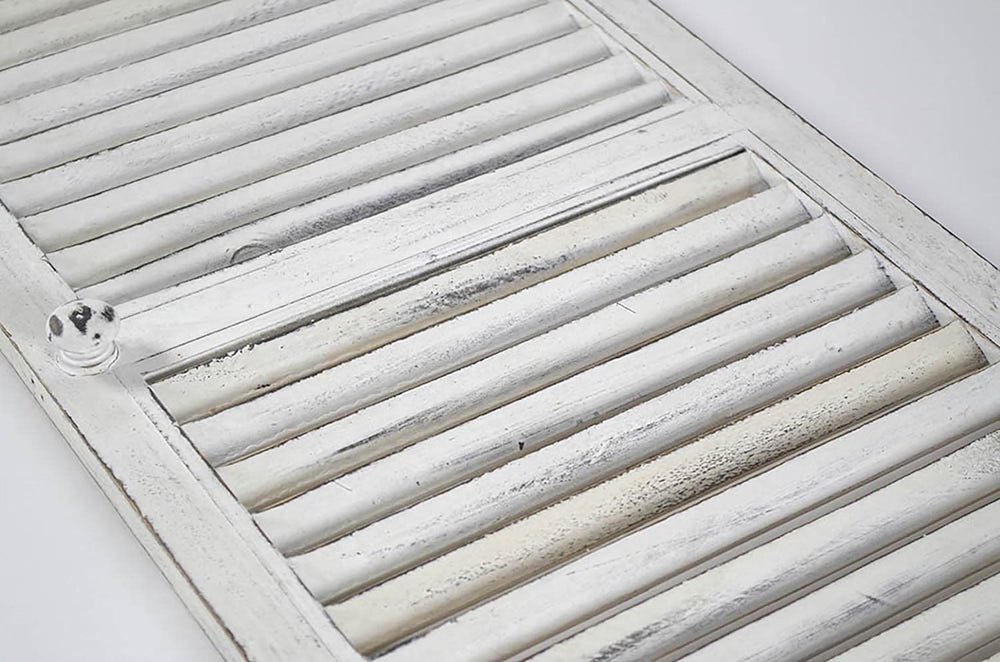 Kobolo Deko-Fensterladen Zier-Fensterladen Tür mit Lamellen - 35x90 cm - Vintage - weiss - Innenbere