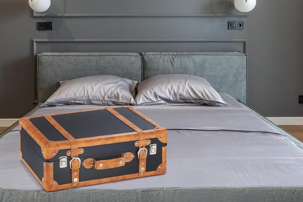 Kobolo Dekokoffer Koffer Vintage Retro - MDF mit Kunstlederüberzug - braun - Metallschliessen