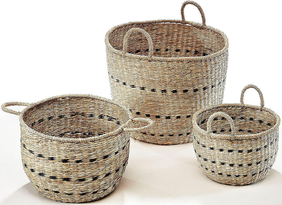 Kobolo Dekokorb Aufbewahrung 3er Set rund - Seegras - natur mit Griffen