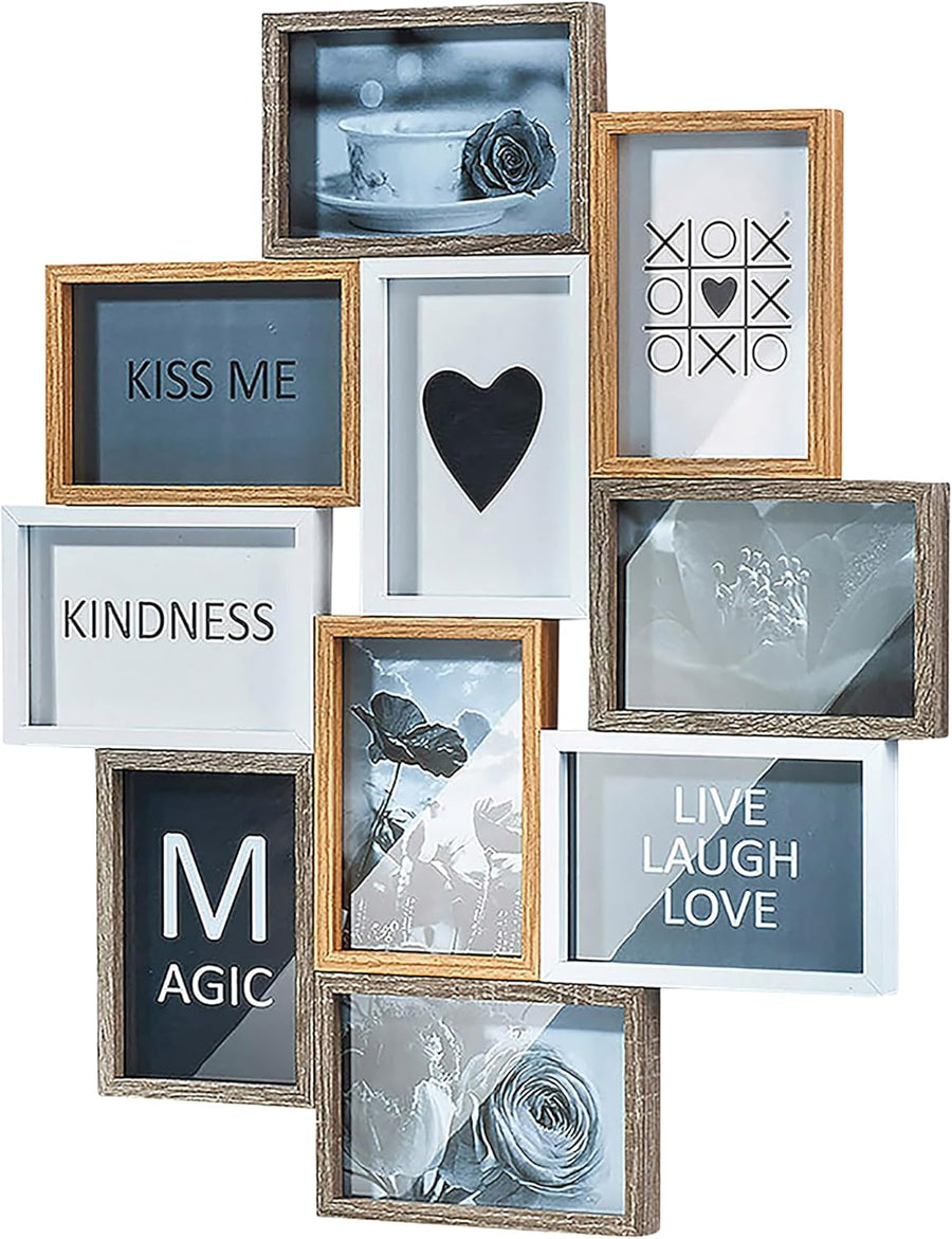 Kobolo Bilderrahmen-Collage - HEART- Holz - weiss natur - 10 Bilder - 59x47 cm