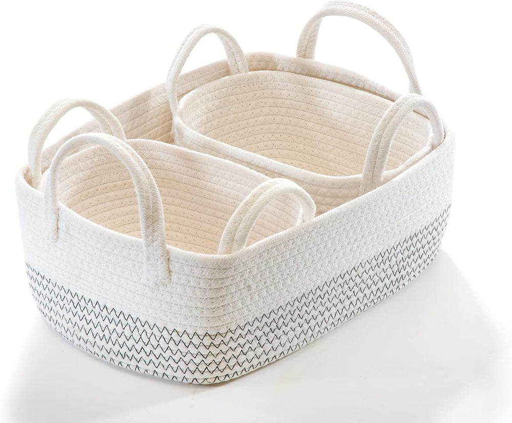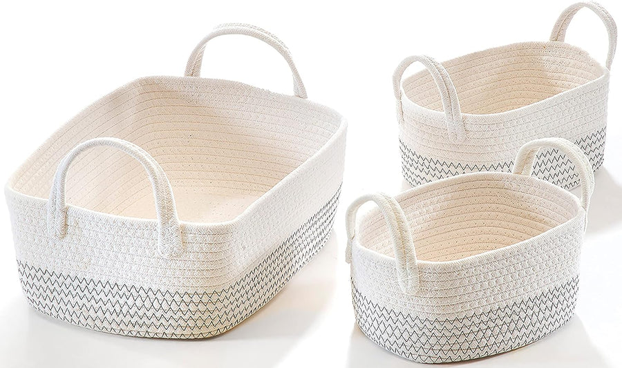 Kobolo Baumwollkorb Aufbewahrungskorb Baumwolle oval weiss mit Muster und Griffen 2 Grössen