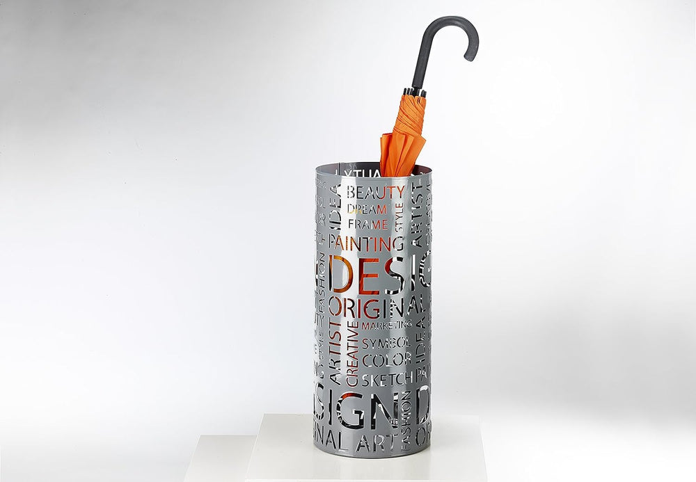 Kobolo Dekorativer und Moderner Schirmständer Letters aus grauem Metall