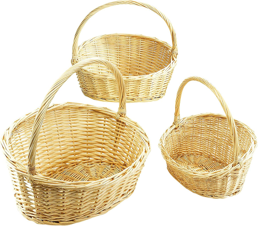 Kobolo Dekoratives Geschenkkorb-Set Präsentkorb aus geflochtener Weide -hell- 3 STK