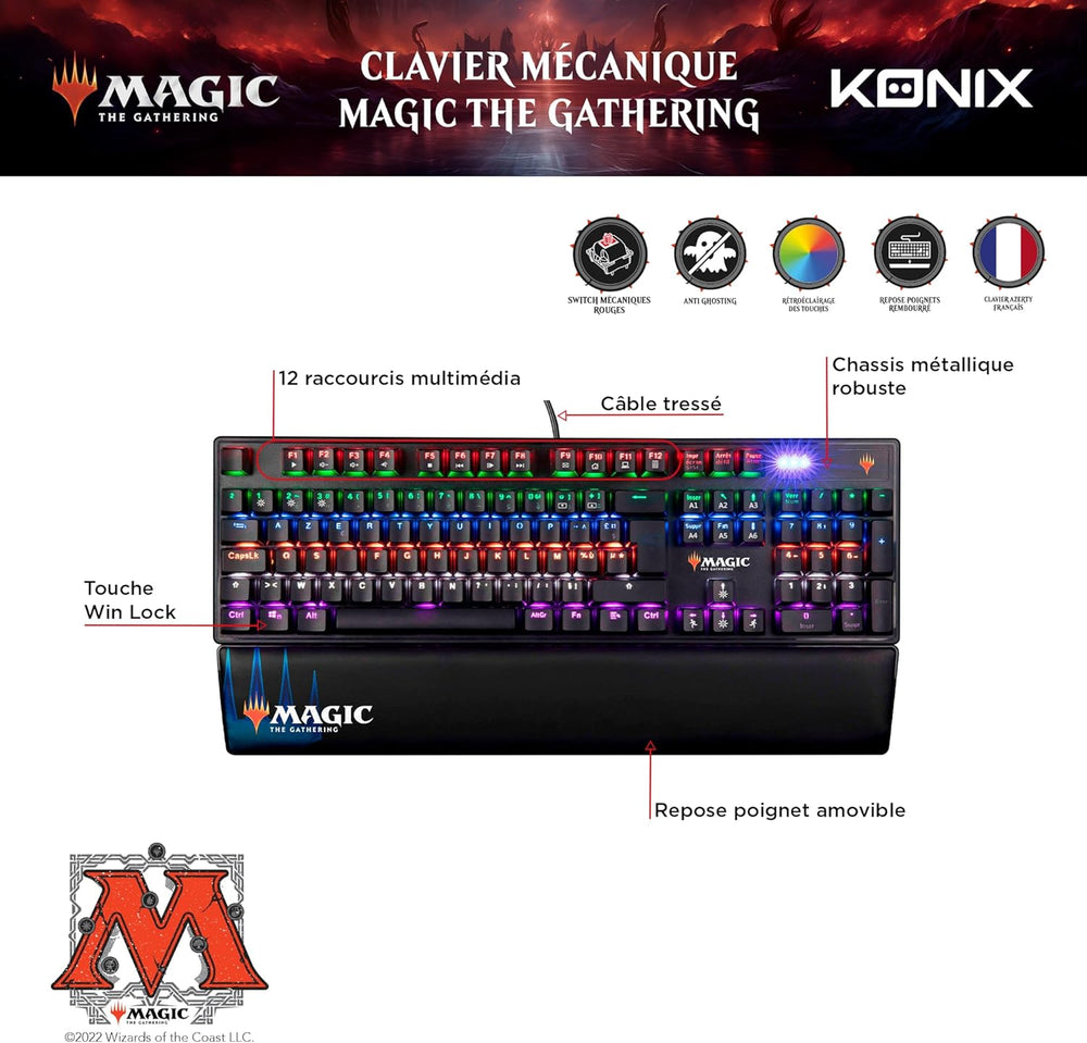 Konix Magic The Gathering Kabelgebundene mechanische Gaming-Tastatur AZERTY - Anti-Ghosting - 20 Lic