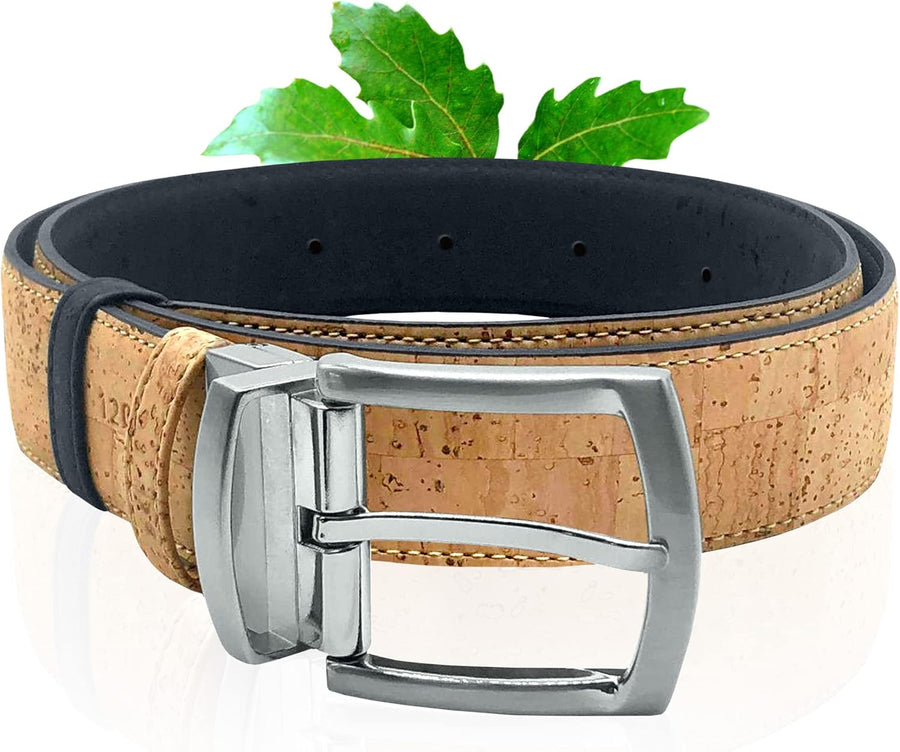 Kork-Gürtel | Wendegürtel aus Kork | Zweifarbig in BEIGE und BLAU | Moderner Naturgürtel mit silbern