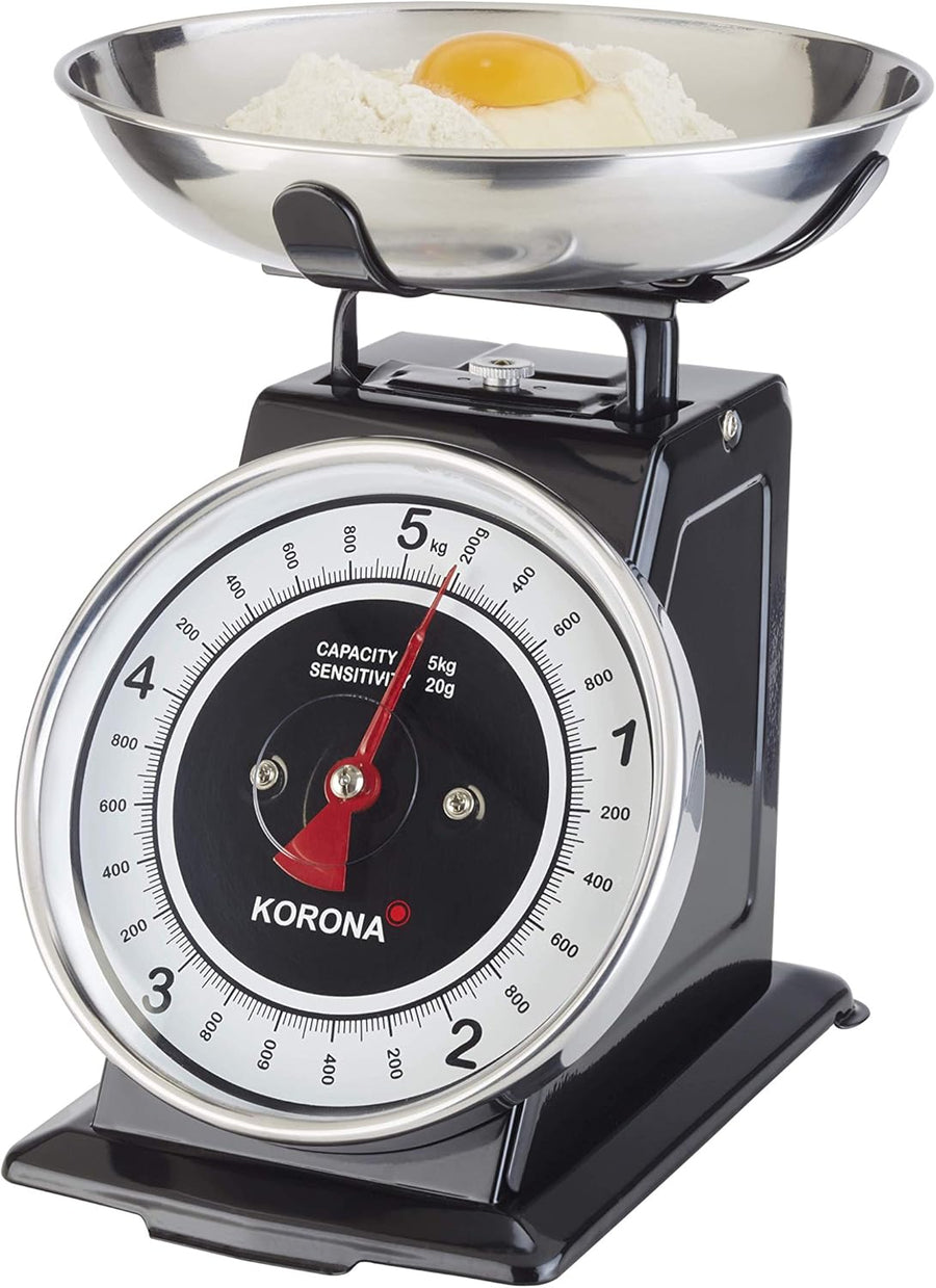 Korona 76150 Retro-Küchenwaage TOM | Tragkraft 5 kg, Einteilung 20 g | Inkl. Wiegeschale | Tara-Zuwi