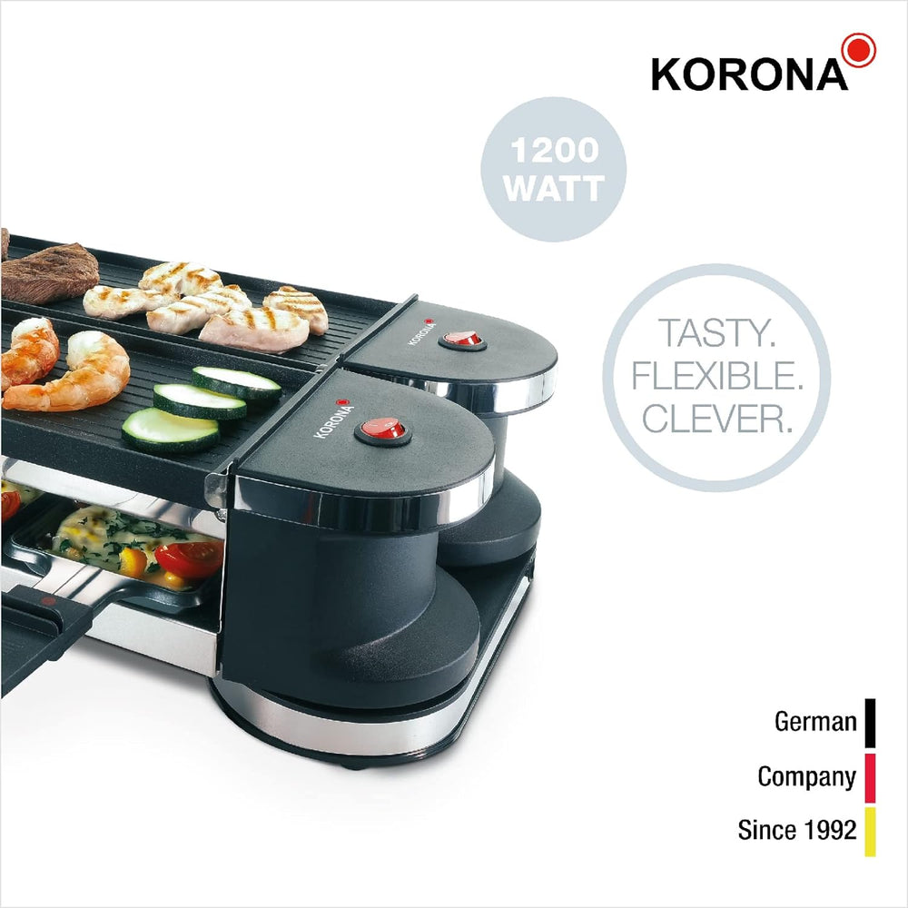 Korona 45070 Raclette für 8 Personen | 8 Pfannen & Spatel | Extra Pfannenablage | Mit antihaftbeschi