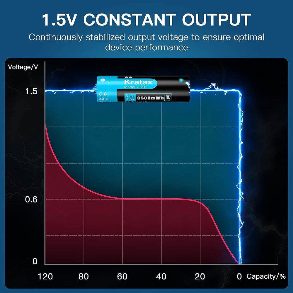 Kratax Wiederaufladbare 1,5V AA Akku Lithium, 3500mWh mit 1600 Zyklen, 1,5 Volt Konstante Ausgabe, 4
