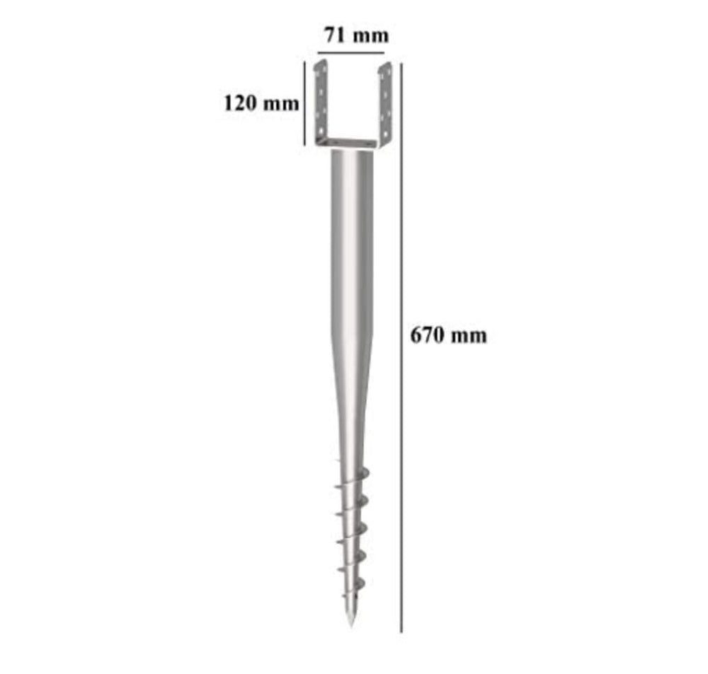 Krinner Bodenhülse U-Fix 71 (Eindrehbodenhülse für Kanthölzer, Pfostenträger, Länge 670 mm, für Holz