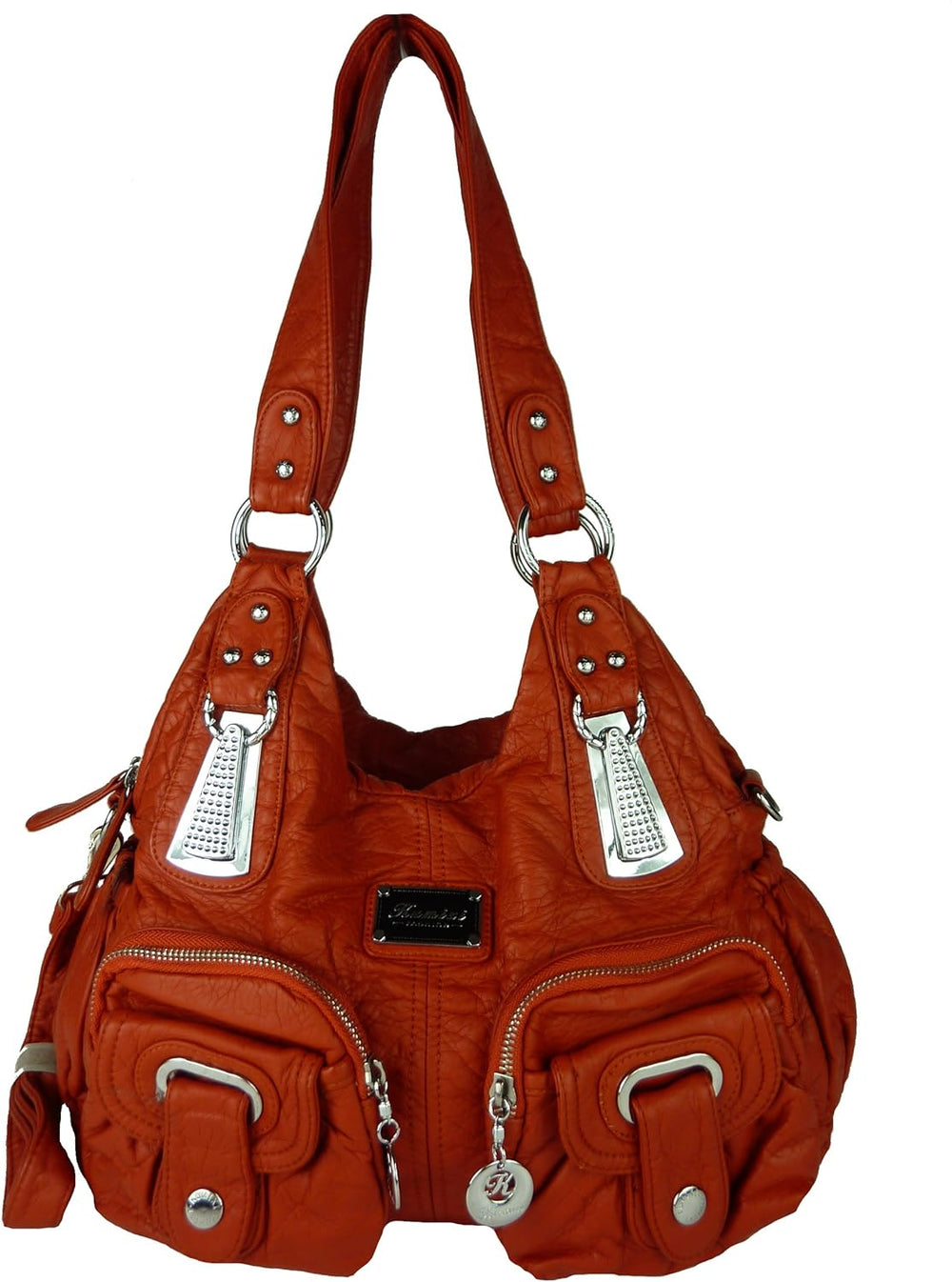 Kumixi 7114 geräumige Damen Handtasche, Tasche 'Leni', versch. Farben 35x25x12 Orange, Orange