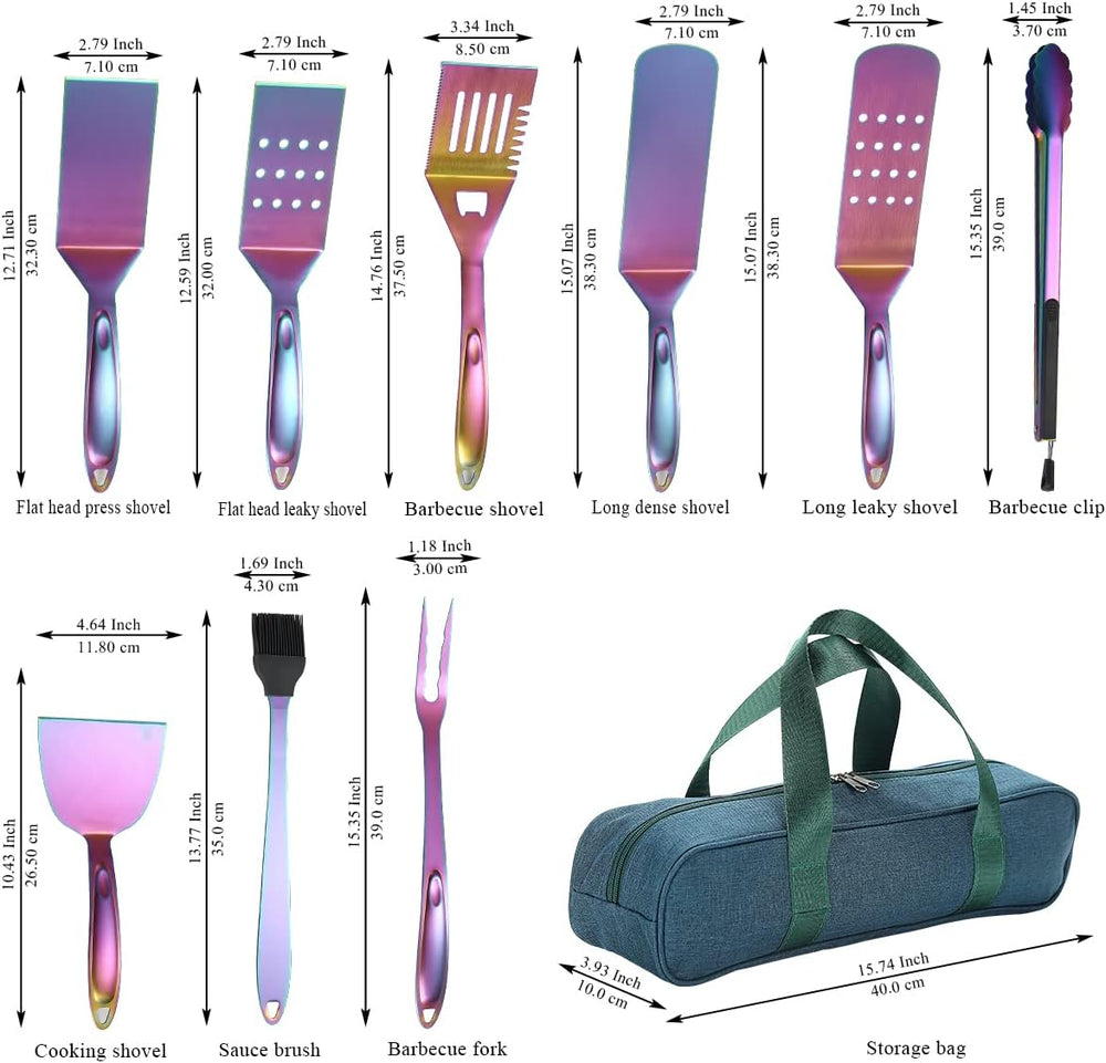 Kyraton Regenbogen Grill Zubehör Kit teilig, Grill Zubehör Set, Titan Bunte Beschichtung Edelstahl m