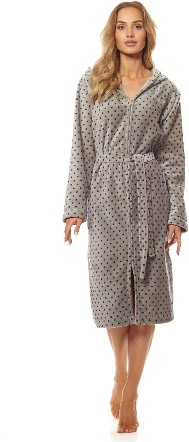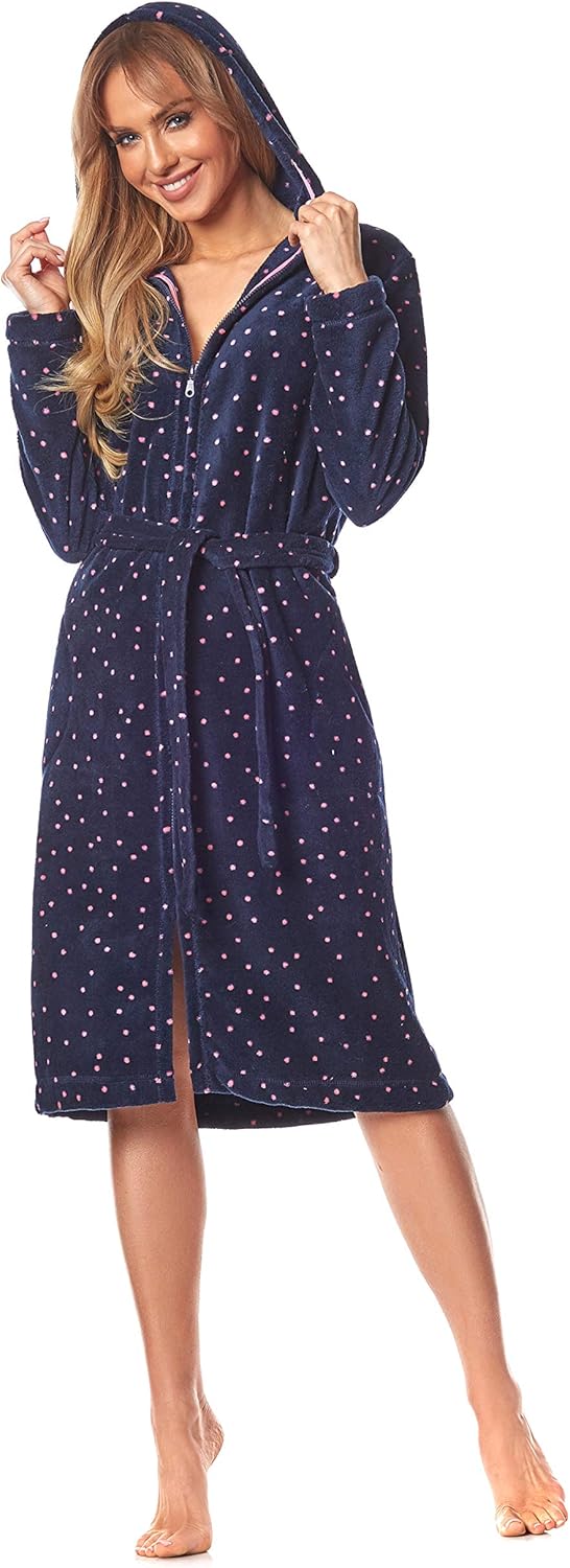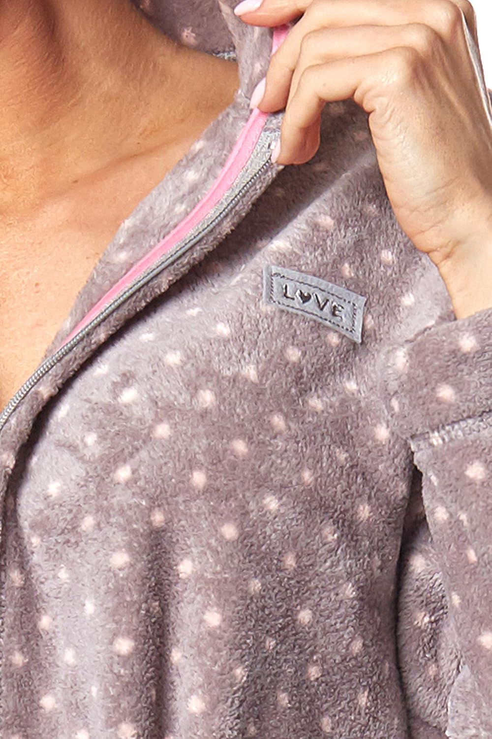 L&L-ZPPR 7119 Frottier Damen Soft Langarm Bademantel Reissverschluss Hausmantel Bademantel mit Kapuz