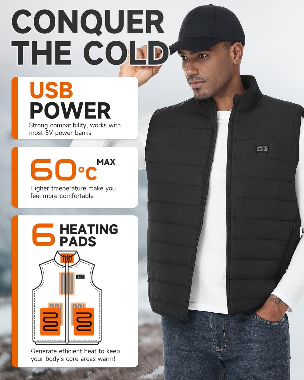LABCOOL Beheizbare Weste, Beheizte Herren Damen, Heizweste mit 5V 12000mAh Akku, Wärmeweste mit 6 He