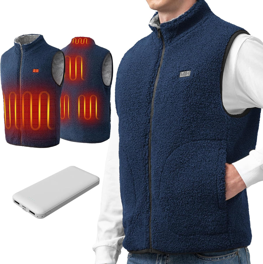 Beheizbare Weste, USB Heizweste Herren Damen, Wärmeweste mit 12000mAh Akku, Polar-Fleecejacke mit 6