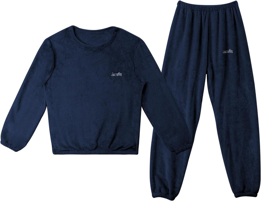 LACOFIA Kinder Jungen Mädchen Schlafanzüge Warme Polar Fleece Pyjama Set Kleinkind Winter Langarm Ha