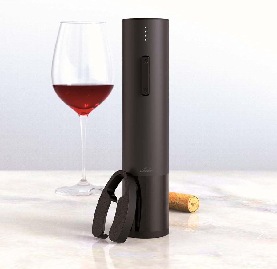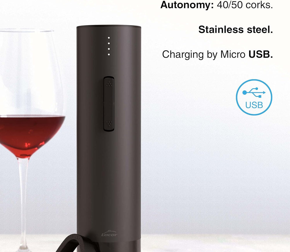 Lacor - 63056 - elektrischer Korkenzieher Black Luxe aus Edelstahl, automatischer Weinöffner, elegan