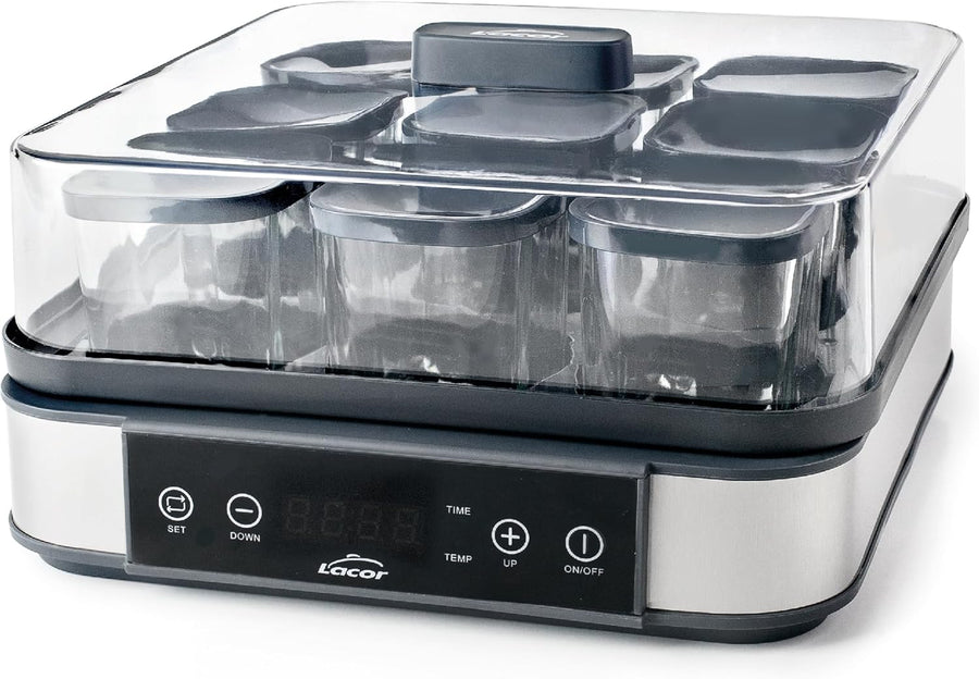 Lacor - 69439 - Deva Joghurtbereiter aus Glas, 9 Gläser im Lieferumfang Enthalten, Einstellbare Temp