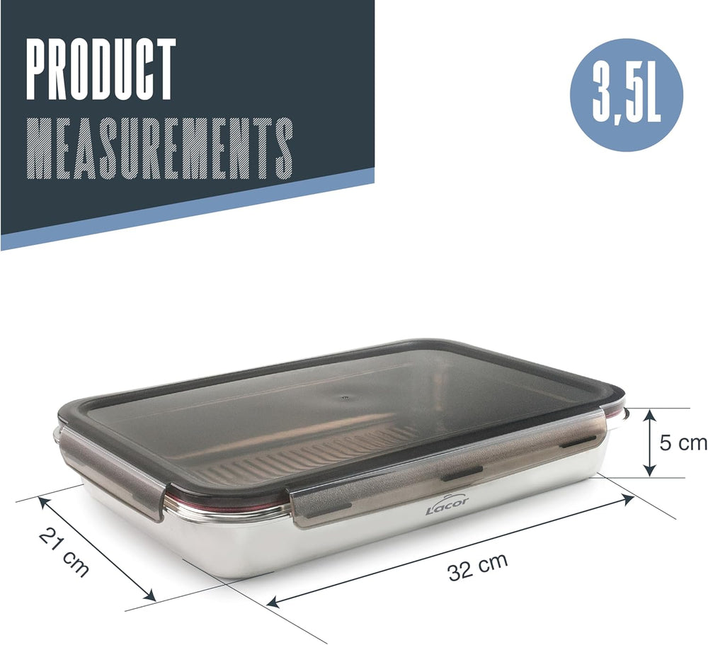 LACOR - 64674 - Ecoinox Pro Luftdichtes Tupper, 3,5 L, Edelstahl 18/10 mit Polypropylen-Deckel, Luft