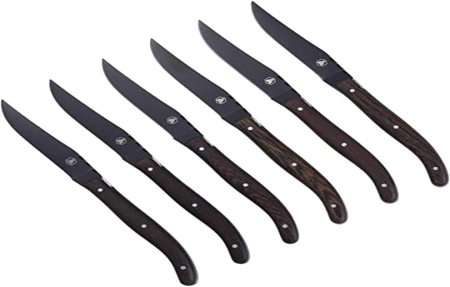 LAGUIOLE - LAGUIOLE Schachtel mit 6 Steakmessern - Wengeholz - Schwarze Klinge - Rostfreier Stahl