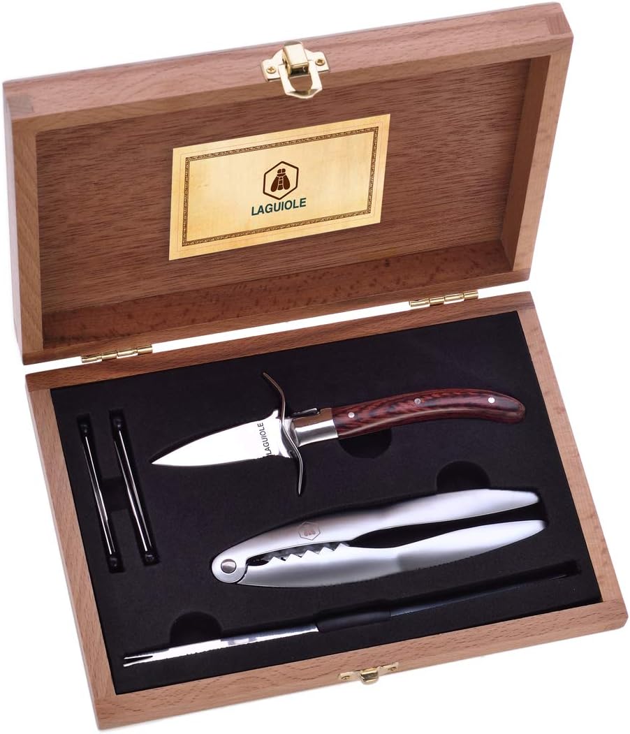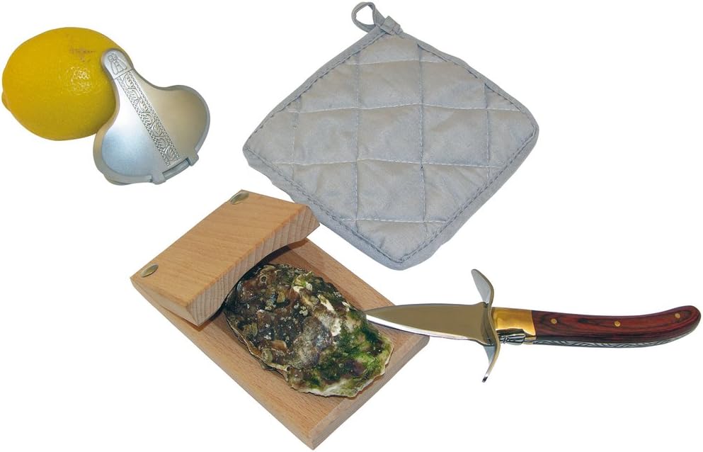 LAGUIOLE - Komplettes Set Austernset - 4 Zubehör - Austernmesser, Zitronenpresse, Austernblock, Mani